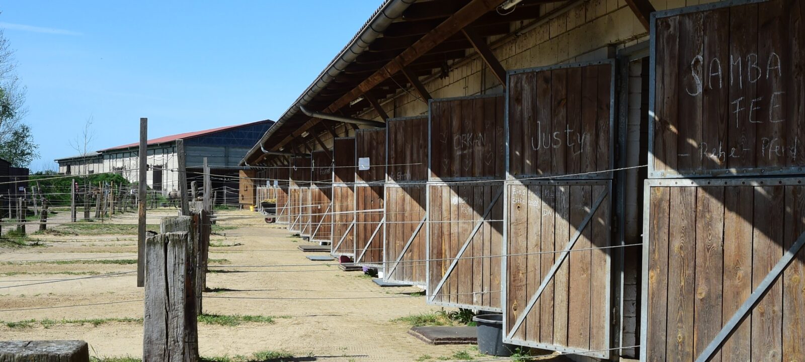 Außenboxen 3 x 4m jeweils mit 3 x 8m vorgelagertem Paddock