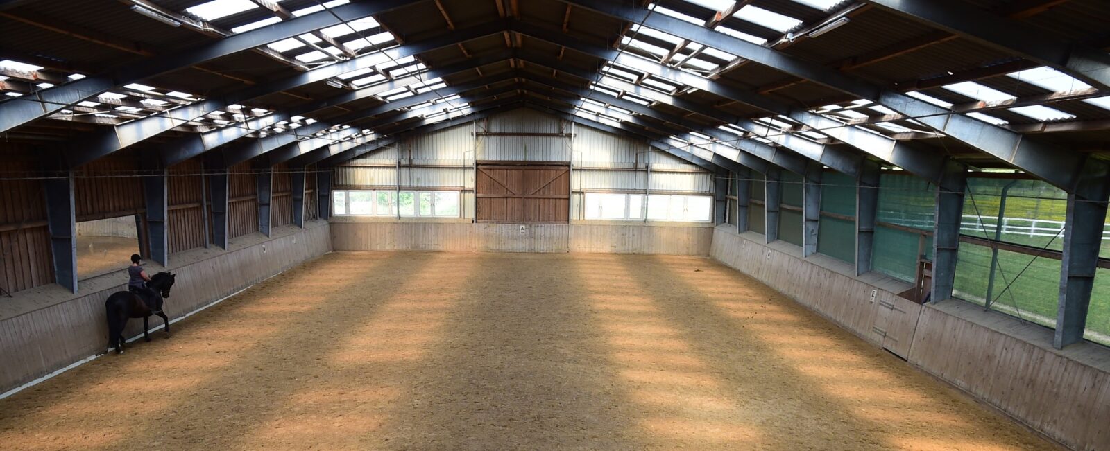 beleuchteter Reitplatz, Dressurviereck, neugebaute 20×40 m Reithalle mit Beregnungsanlage, separierter Longierplatz
